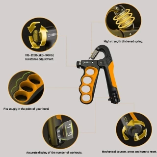 1.Human Engineering Dimensions: With its non-slip design and ergonomic shape, this hand grip strengthener is perfect for taking your finger strength training to the next level. Fits all finger sizes comfortably and securely. 2.Durable Grip Strengthening: Crafted with high-strength thickened spring made of stainless steel, this hand grip strengthener boasts unmatched durability, rust-proof, wear-resistant, and sturdiness for long-lasting use. 3.Enhanced Results: Maximize your grip strength potential with the Hand Grip Strengthener. Gain better insights on your training progress and results with the intelligent counting system and clear LCD screen. Push yourself to new levels every time you train. 4.Diverse Applications: Boost your hand strength and flexibility with this adjustable hand grip strengthener. Targeting finger and forearm muscles, it's perfect for athletes, musicians, and gamers. Its comfortable grip and durable design make it a must-have for your fitness routine. 5.Great for Gift Giving: Maximize your athletic and musical abilities with this hand grip strengthener. As a perfect training aid for tennis players, baseball players, golfers, and climbers, it strengthens your grip, endurance, and dexterity. It also makes a great gift for fitness enthusiasts.
