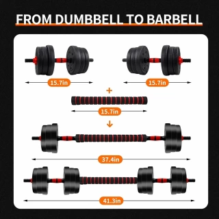 Multi-Functional Design – Easily convert from dumbbells (5.5lbs-22lbs each) to a full barbell (44lbs/20kg max) for diverse training options. Precise Weight Adjustment – Customize your load with 4.4lbs, 2.75lbs, and 3.3lbs plates (x4 each) for incremental progress. Anti-Slip & Stable Grip – Features a 40cm sponge connecting rod and non-slip handle to prevent skidding during intense sessions. Durable & Safe – Thicker materials and rigorous testing ensure reliability, even at maximum weight capacity. Space-Saving – Compact dimensions (15.7in x 37.4in x 41.3in) fit perfectly in home gyms.